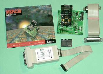 Starterkits für MSP430-Controller: MSP-FET-430Viele Controller-Familien bieten Stromsparmodi an. Und trotzdem kann bei batterieversorgten Anwendungen der Stromverbrauch immer noch zu hoch sein. Eine echte Alternative ist die MSP430-Serie von TEXAS INSTRUMENTS. Diese 16-Bit-Controller arbeiten bereits ab 1,8 Volt und verbrauchen auch im aktiven Zustand unter 500 µA und weniger (je nach Taktfrequenz). Manche Anwendungen kommen mit geringen Taktfrequenzen aus. Dann läßt sich der Strom des MSP430 sogar in den Bereich von etwas über 1 µA senken. Für rechenintensive Programmteile können Sie die Taktfrequenz des MSP430 per Software auf höhere Werte umschalten. Diese Controller gibt es als OTP-Versionen. Besonders interessant sind aber die Flash-Typen, die immer wieder programmierbar sind. Mehr Informationen finden Sie auf der MSP430-Controller-Seite. Und damit Sie einen schnellen Einstieg finden, bieten wir Ihnen preiswerte Starterkits (MSP430 Flash Emulation Tool) für verschiedene Controller an. Voraussetzung für alle Starterkits: PC mit Windows 95/98/ME/NT/2000/XP