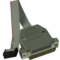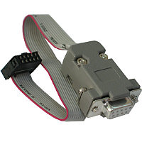 Der Adapter ist mit einem kurzen Flachbandkabel mit Pfostenstecker ausgestattet, der kompatibel zur Pinbelegung der 10-poligen ISP-Stecker von Atmel ist.
